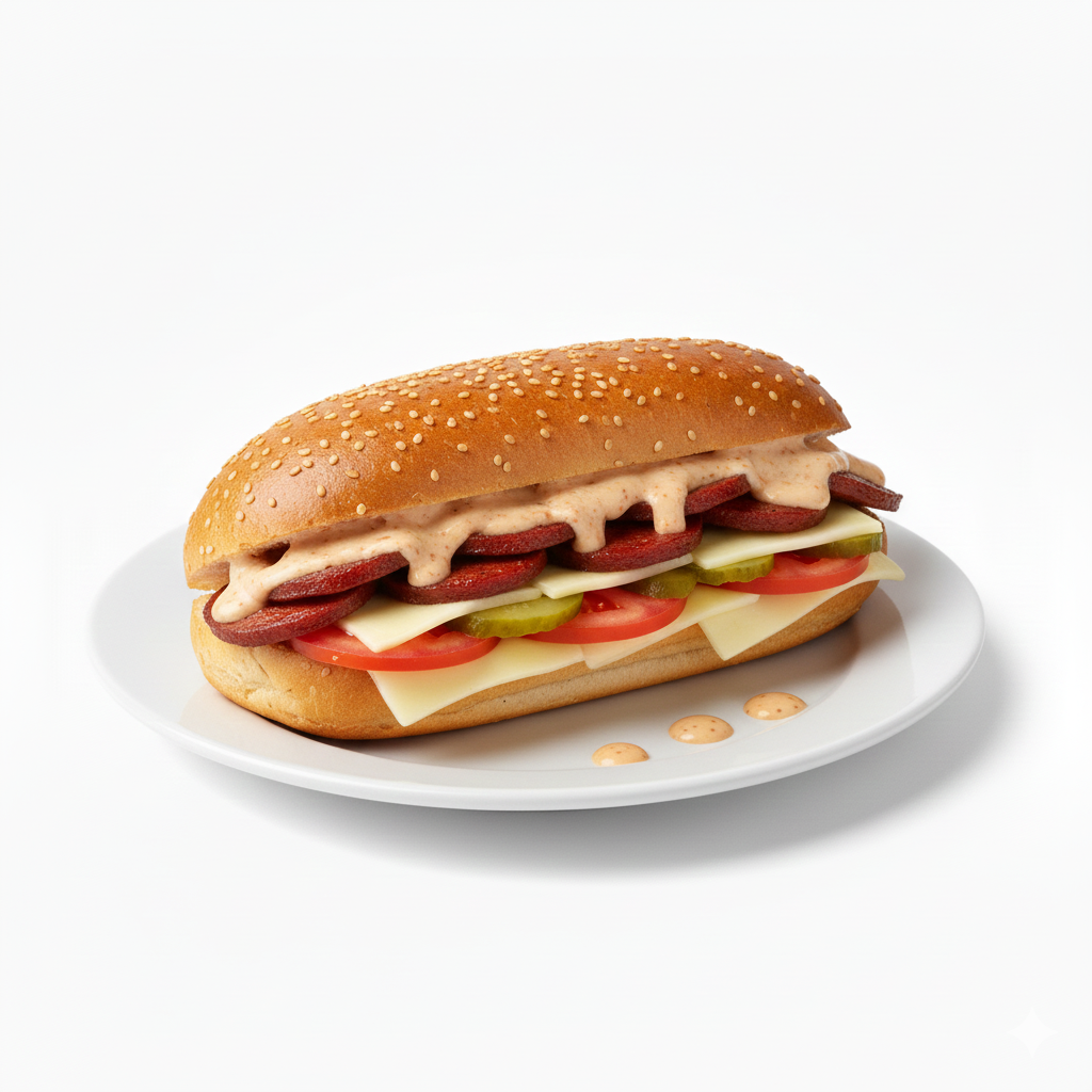 Döner ekmeği, sosis, salam, sucuk, turşu..
